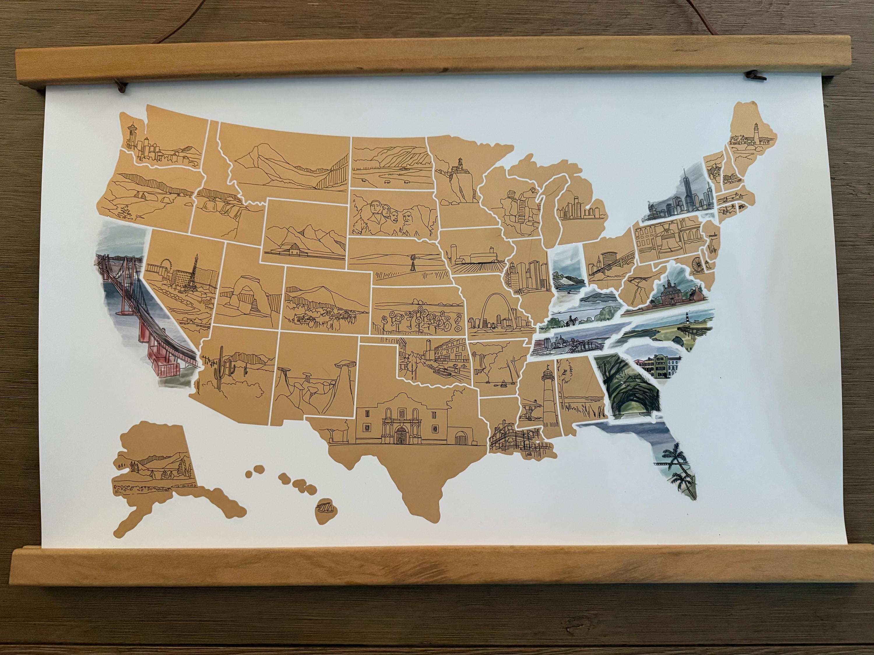 U.S. State Scratch Off Map – Illustrated Bucket List Poster